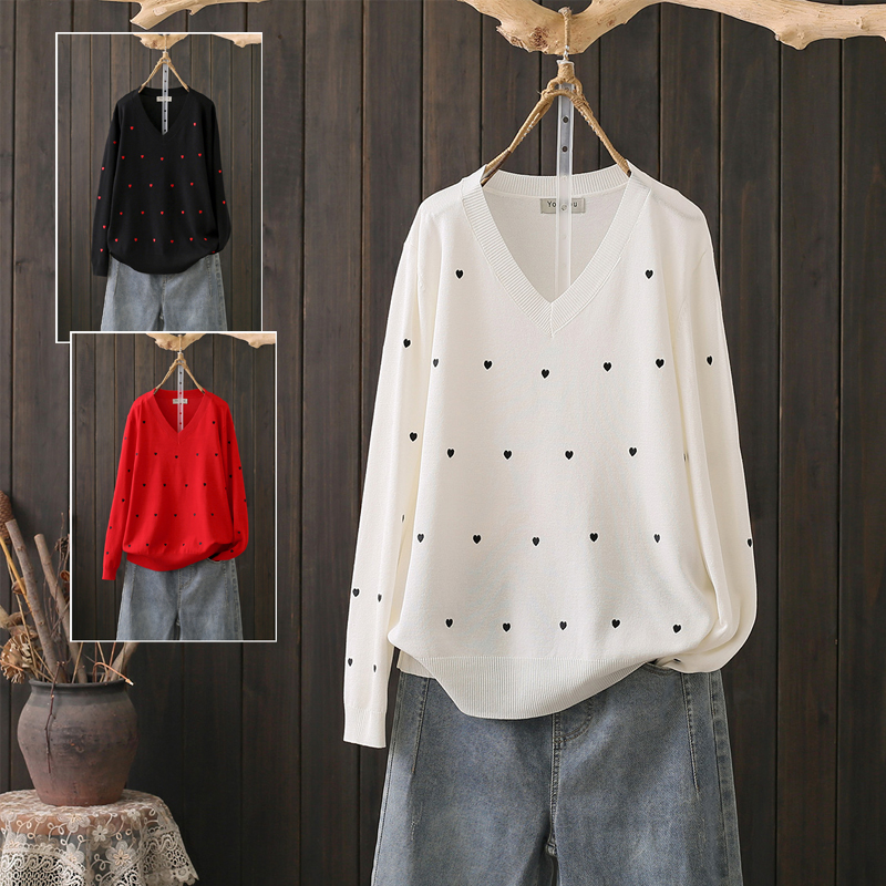 温柔慵懒风V领彩色波点毛衣女款2025秋冬新款宽松百搭显瘦针织衫