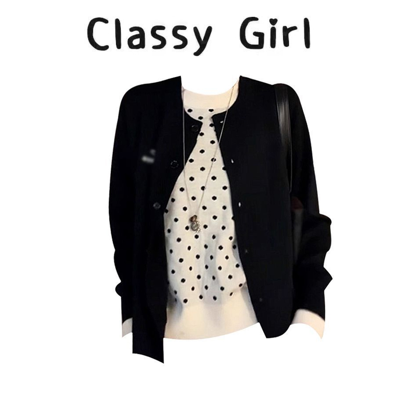 韩系复古气质波点毛衣女装秋季新款韩版显瘦百搭针织开衫上衣外套
