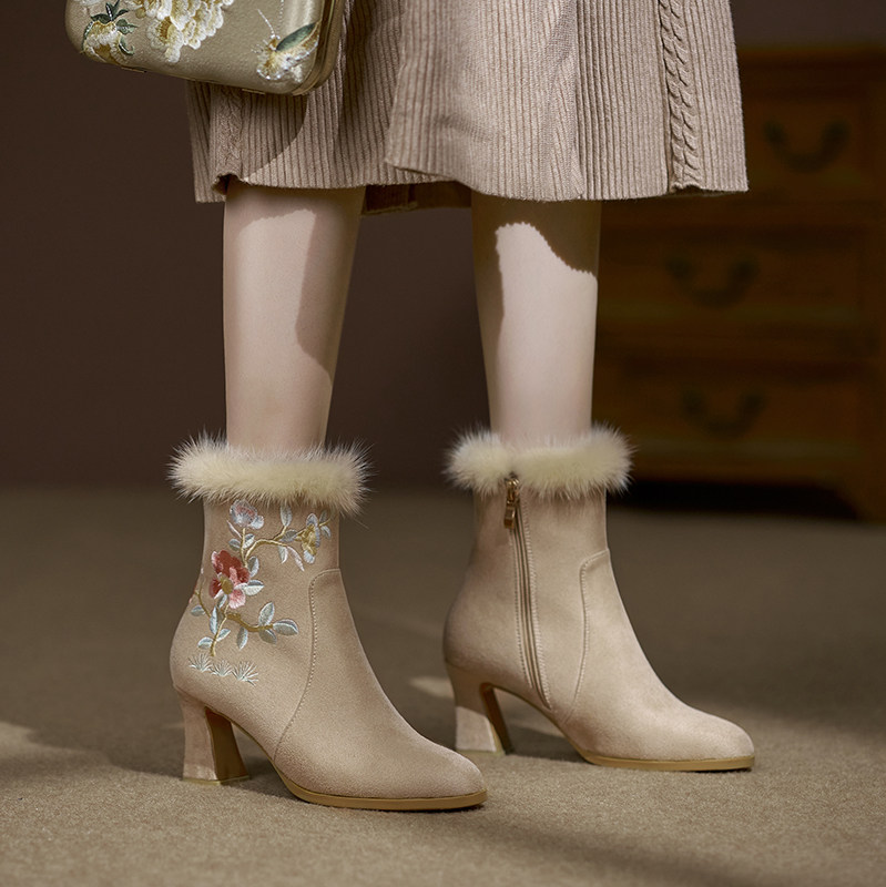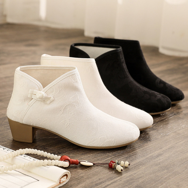 零尚舞度国风原创小众绣花粗高跟旗袍鞋短筒靴子民族风女鞋秋冬新
