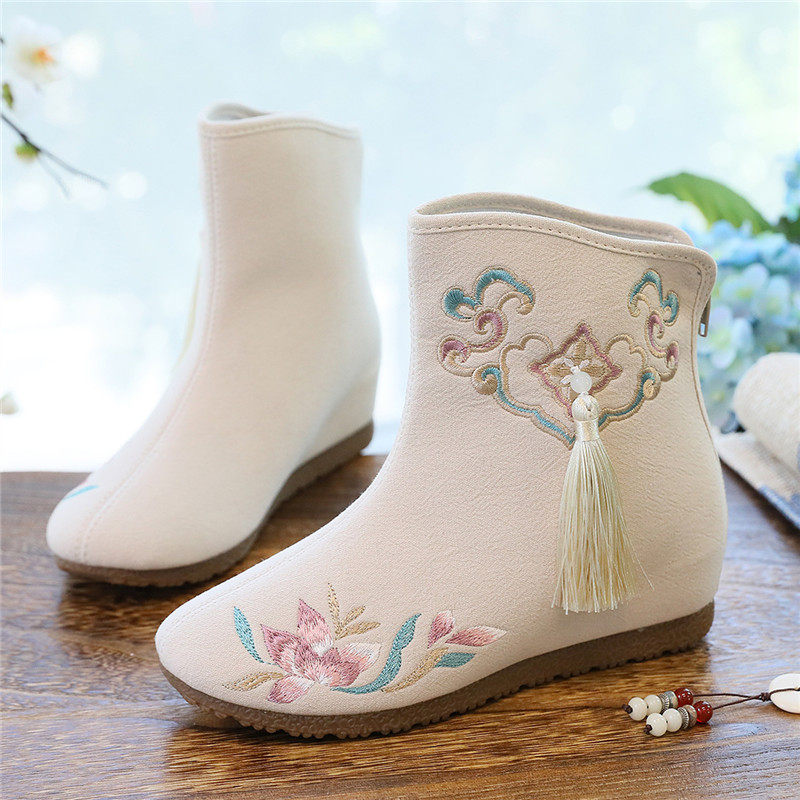 【清仓】老北京布鞋国风汉服女内增高平底旗袍短靴冬民族风绣花靴
