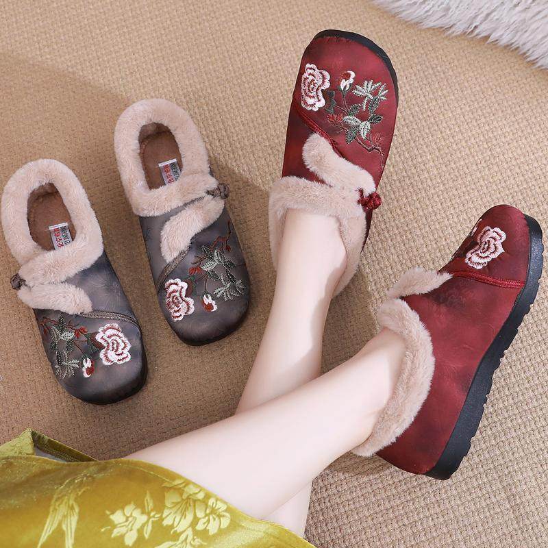 老北京布鞋女冬季新款加绒加厚保暖老太太棉鞋防滑软底古风绣花靴