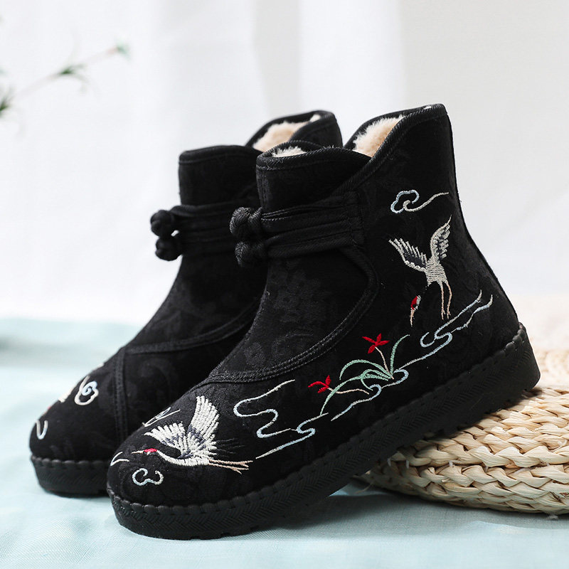念亿笙枳鹤原创汉服靴子女冬毛口棉靴古风古装短靴加绒皂靴绣花靴