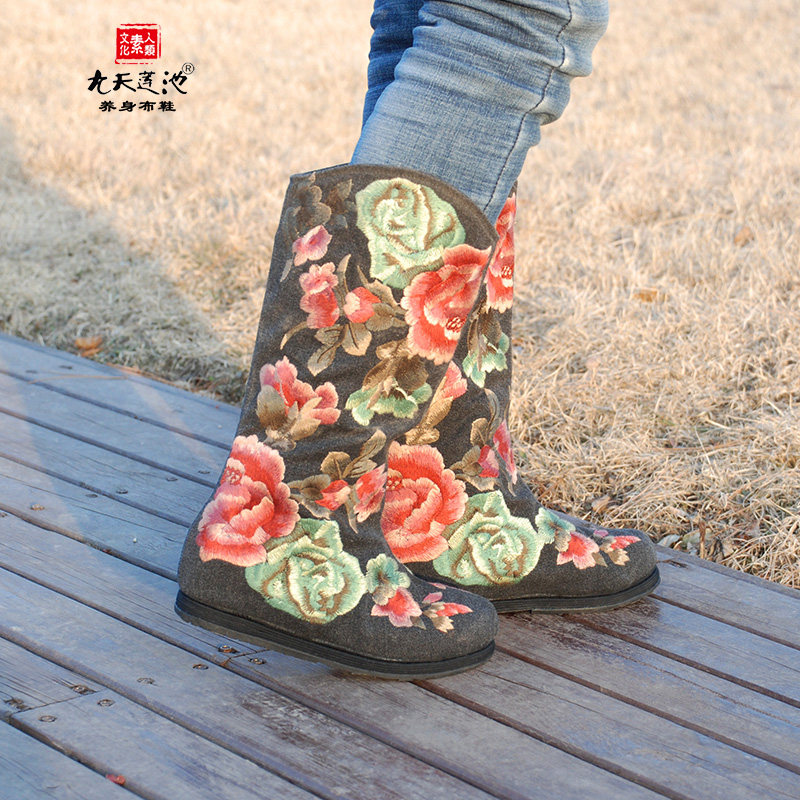 九天莲池帆布长靴千层底布鞋女靴子女2024冬款内增高老北京绣花靴