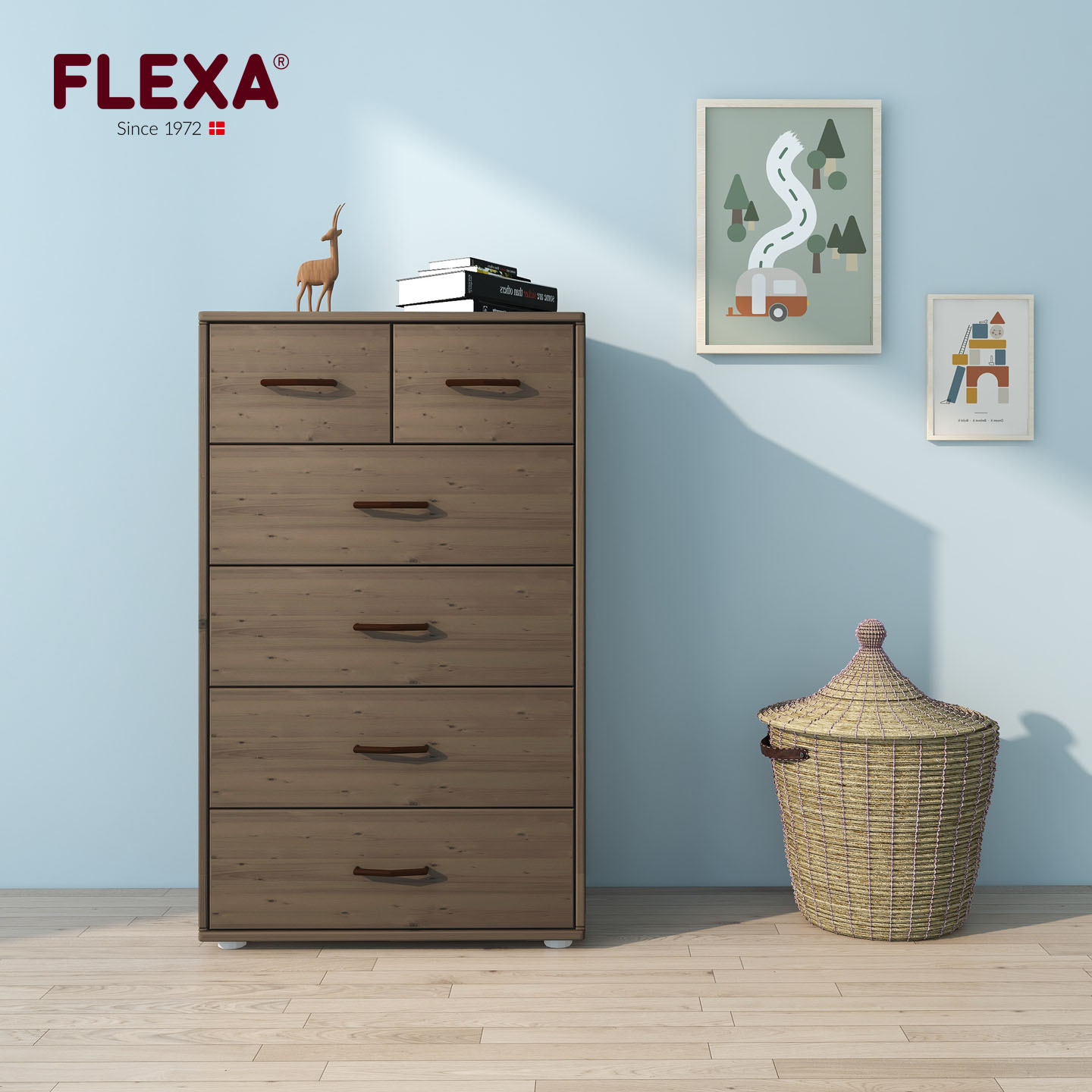 限时特价 FLEXA/芙莱莎储物柜儿童收纳柜带抽屉六抽斗柜实木柜