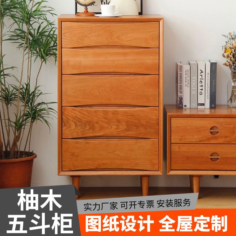三梦实木斗柜卧室靠墙床尾柜大容量储物柜收纳柜客厅抽屉柜五斗柜