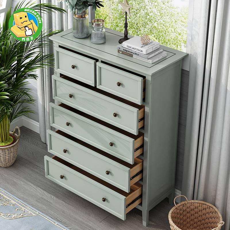 4I美式六斗柜实木柜子复古收纳柜卧室柜子抽屉玄关柜轻奢整体家具