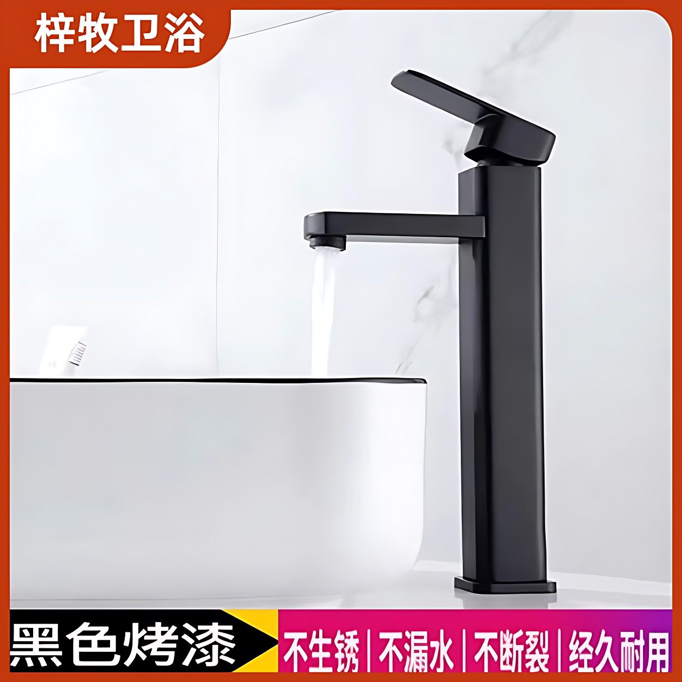 ARTIQUA 全铜面盆水龙头冷热洗脸盆加高台上盆龙头北欧黑色
