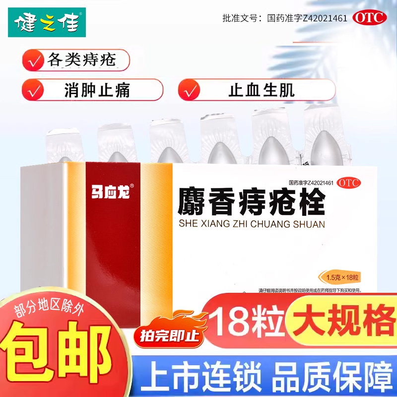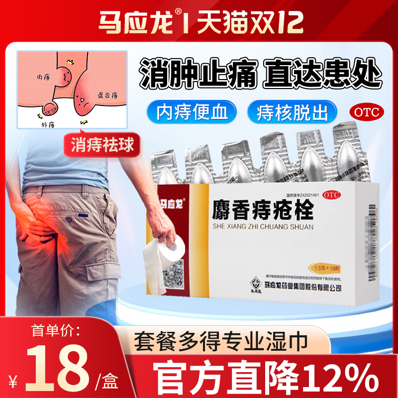 马应龙麝香痔疮栓正品18粒痔疮药内外痔疮膏药肛门痛肛裂大便出血