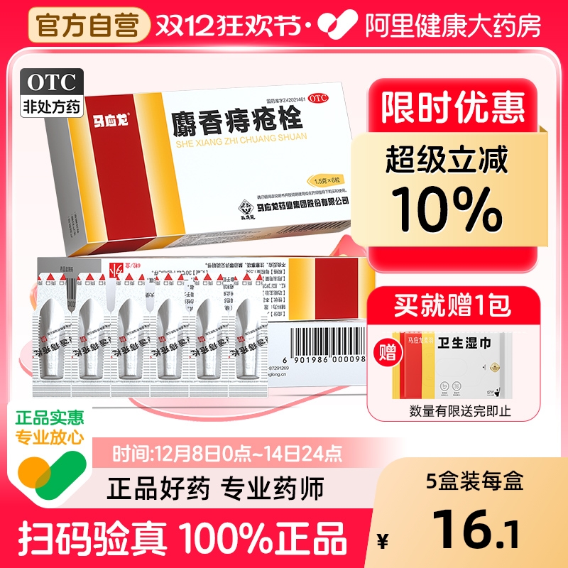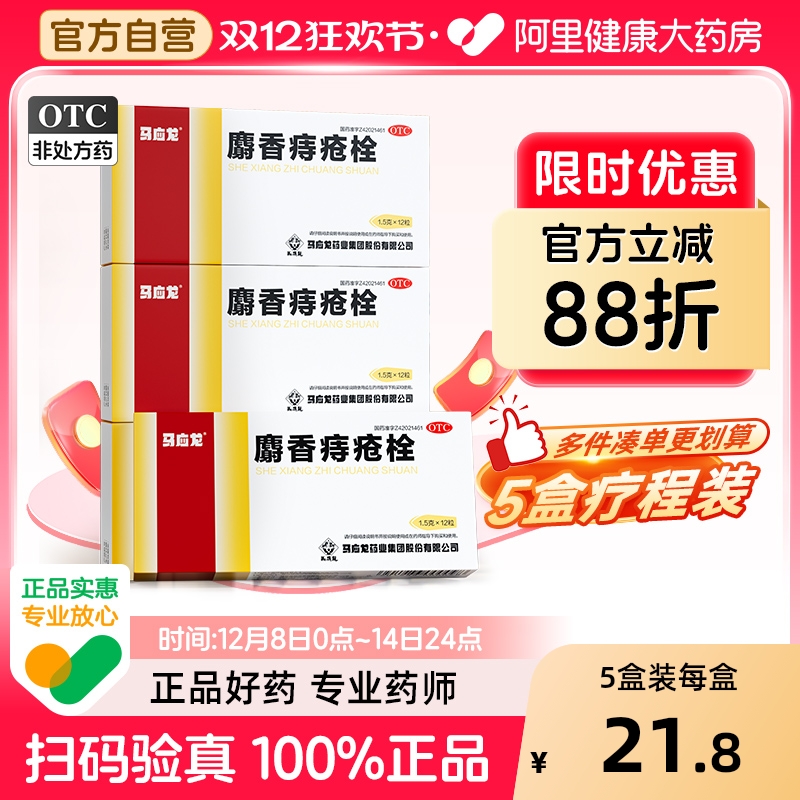 马应龙麝香痔疮栓12粒内外痔疮膏药肛裂便血消痔软膏痔疮混合痔疮