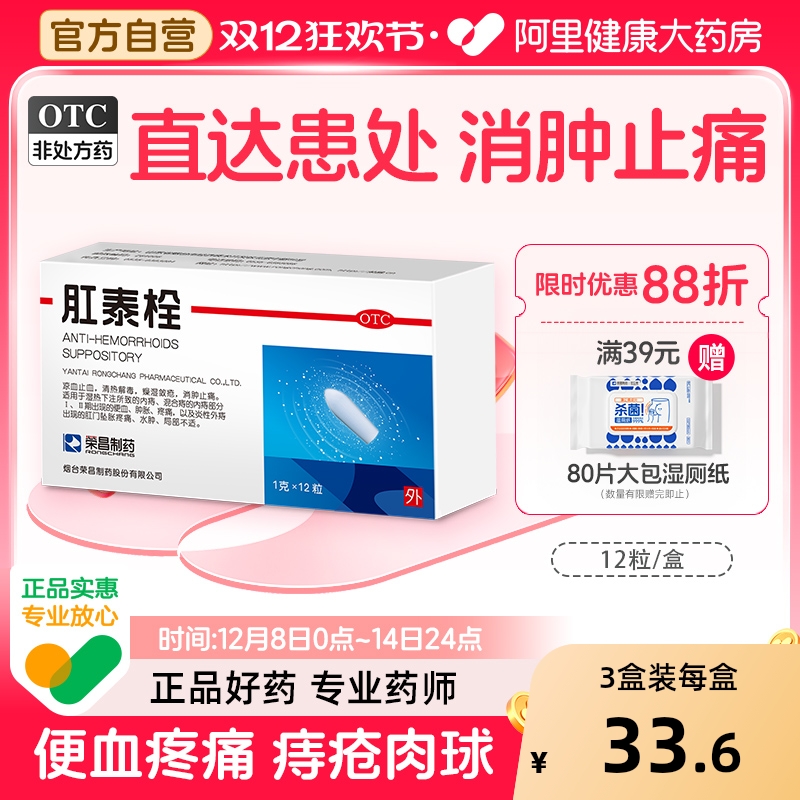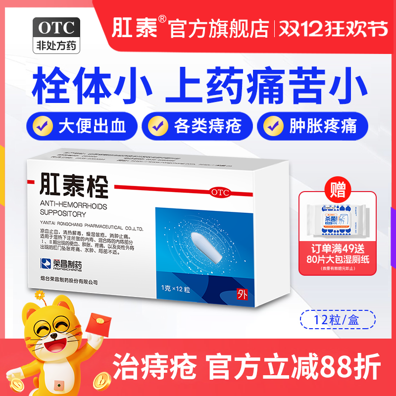 荣昌肛泰栓痔疮栓12粒痔疮药混合痔疮痒消肉球痔痔栓痔疮膏肛门痒