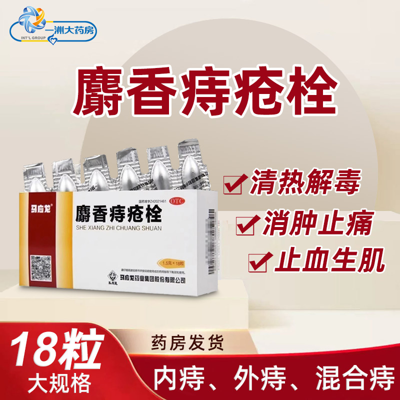马应龙麝香痔疮栓18粒混合痔治疗内痔疮大便出血止血痔疮膏OTCxy