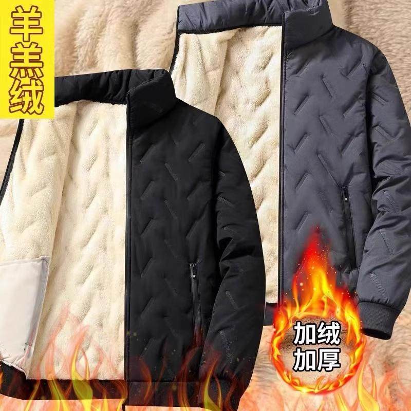 冬季加绒外套男士2026新款防寒保暖加厚开衫宽松大码羊羔绒棉服男