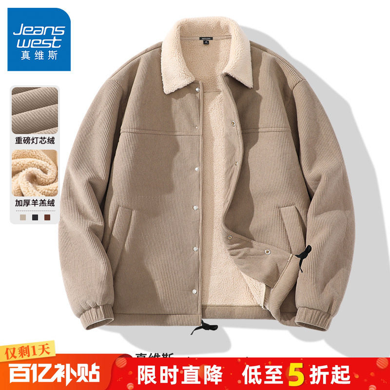 GV真维斯冬季加绒外套男重磅羊羔绒加厚保暖夹克男款双面绒上衣A