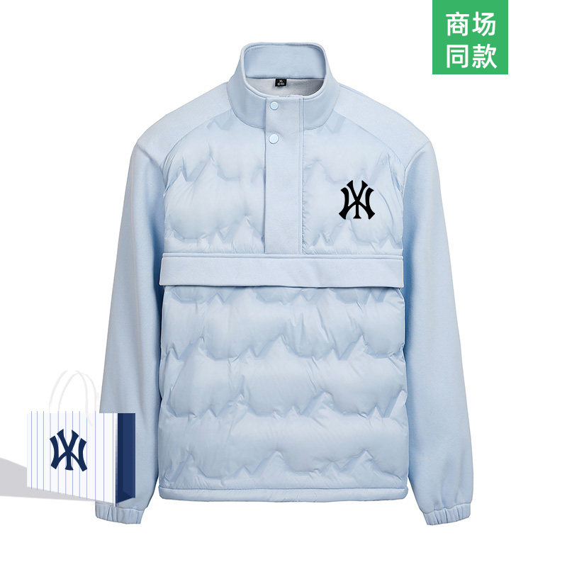 奥特莱斯冬季加绒外套男女同款美式复古褶皱设计感立领纯色羽绒服