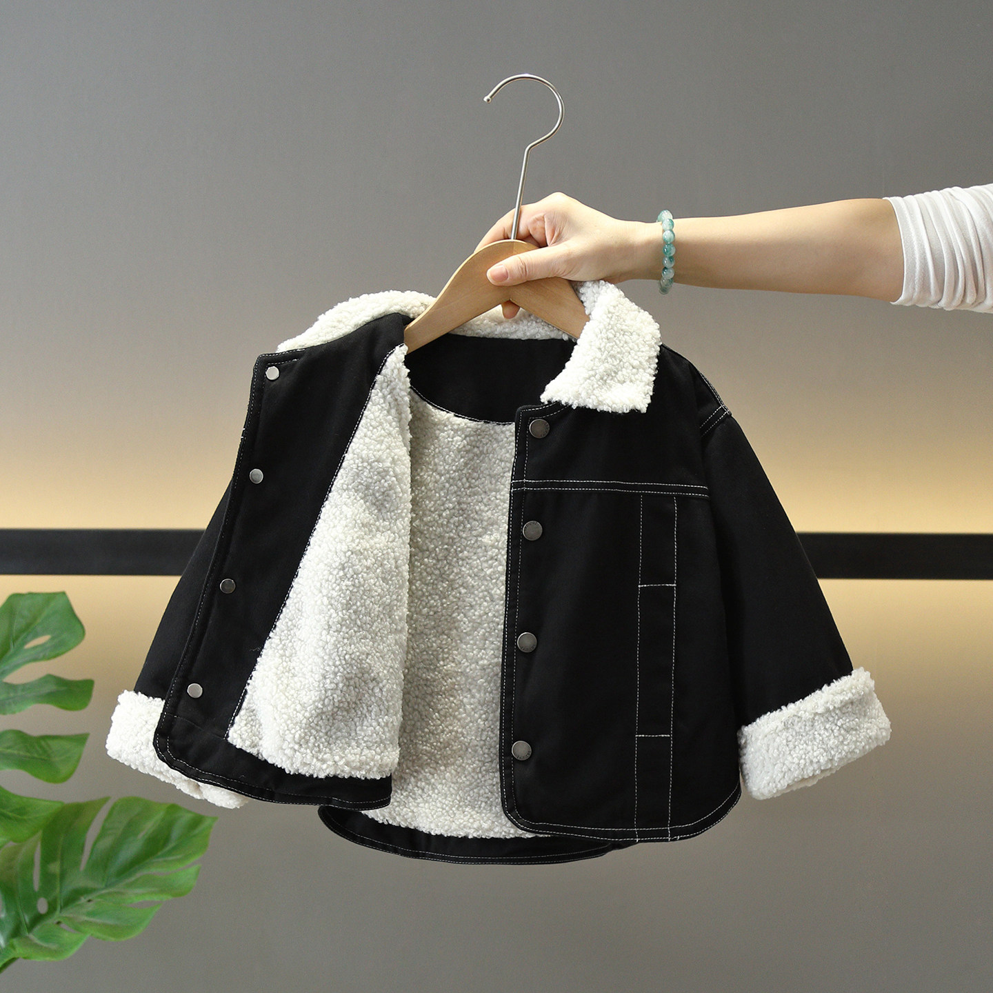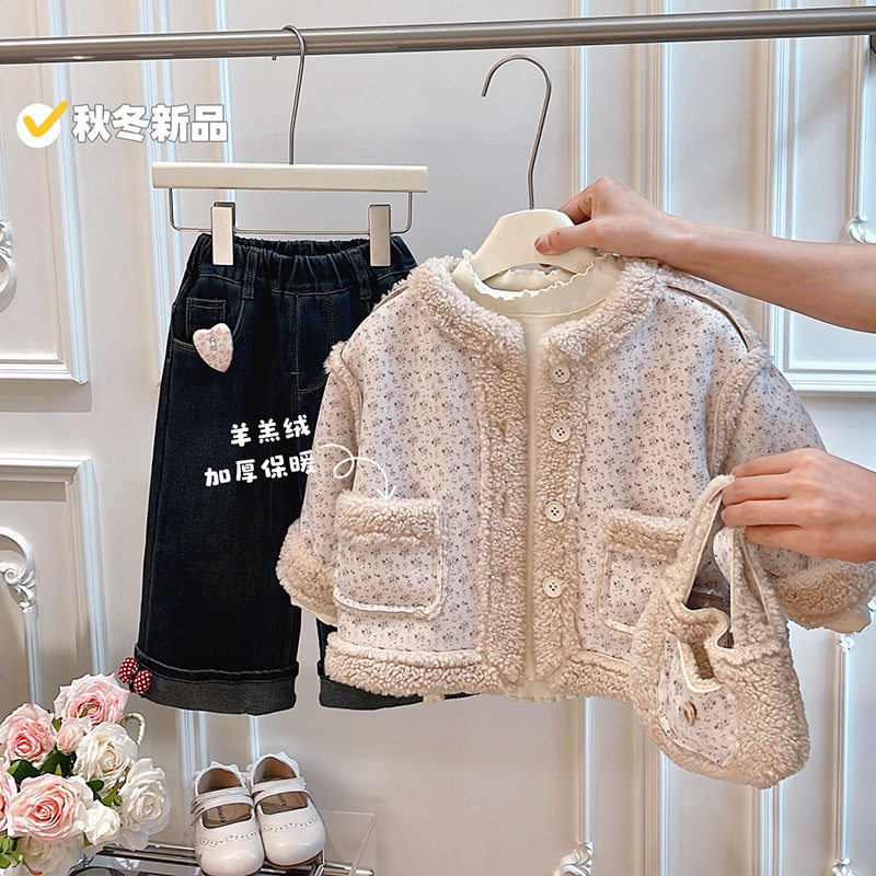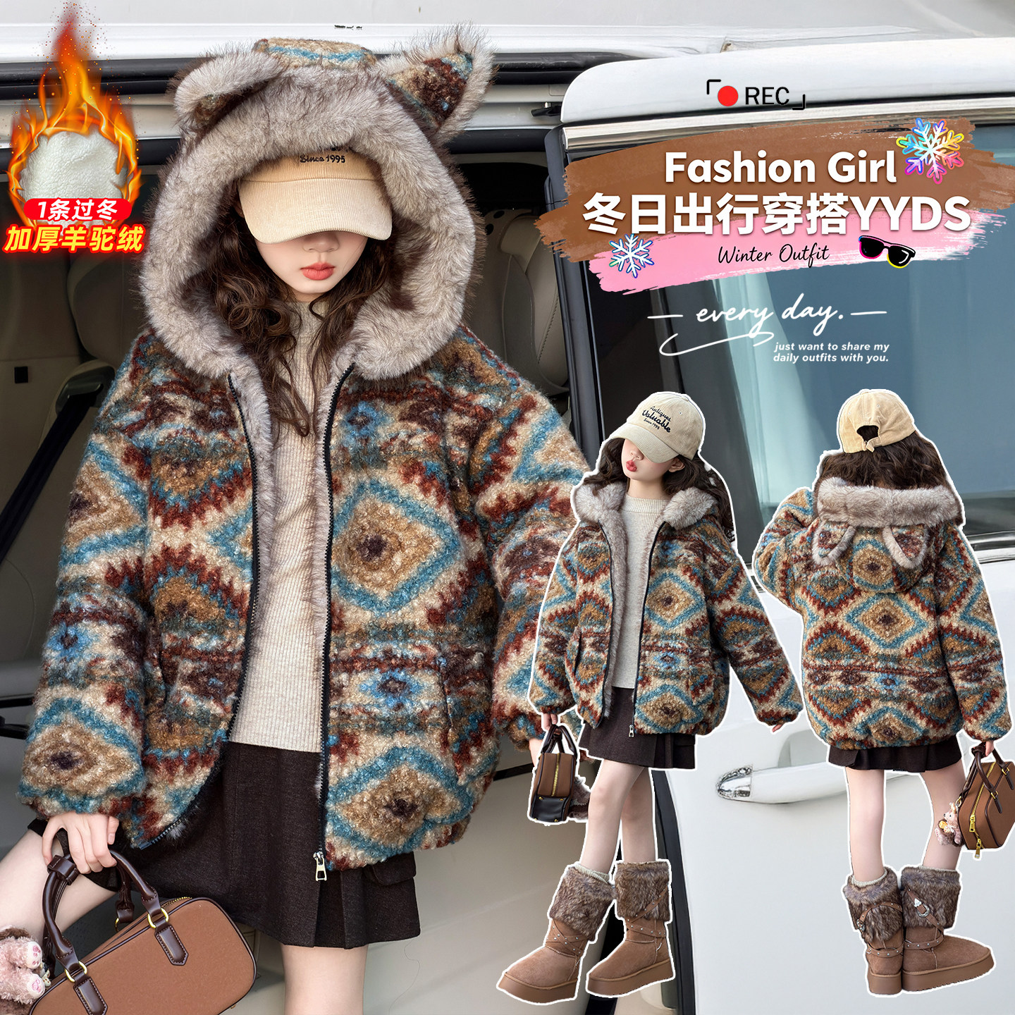 女童冬季加绒外套2025新款儿童加厚羊羔绒上衣女孩冬装保暖毛毛衣