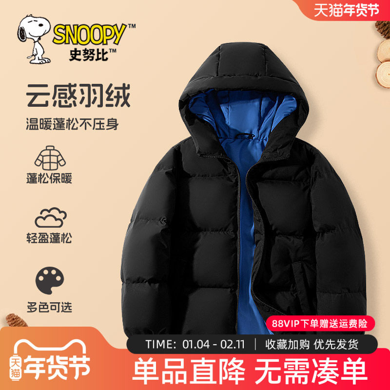 史努比儿童羽绒服男童冬季加绒外套2025新款白鸭绒冬装男孩防寒服