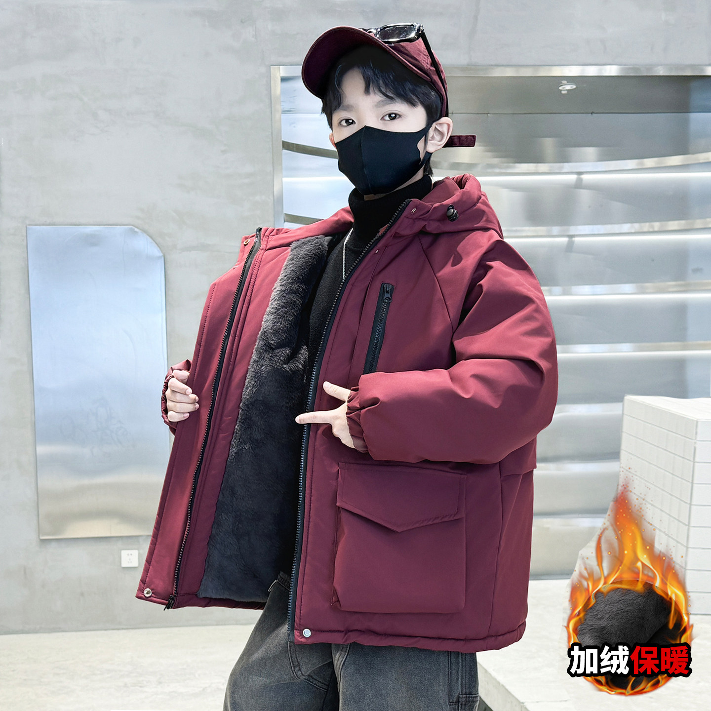 秋冬季加绒外套男孩青少年学生13岁帅气加厚棉衣15大童男装羽绒服