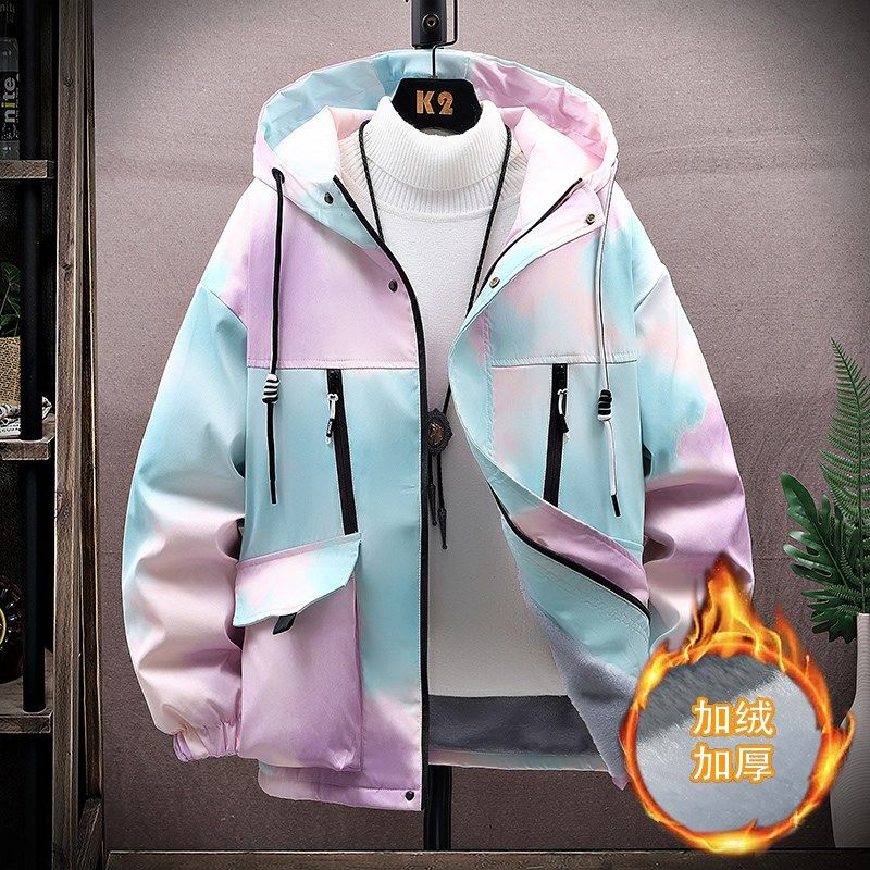 秋冬季加绒外套男款运动休闲冲锋衣防风工装加厚男装宽松大码夹克