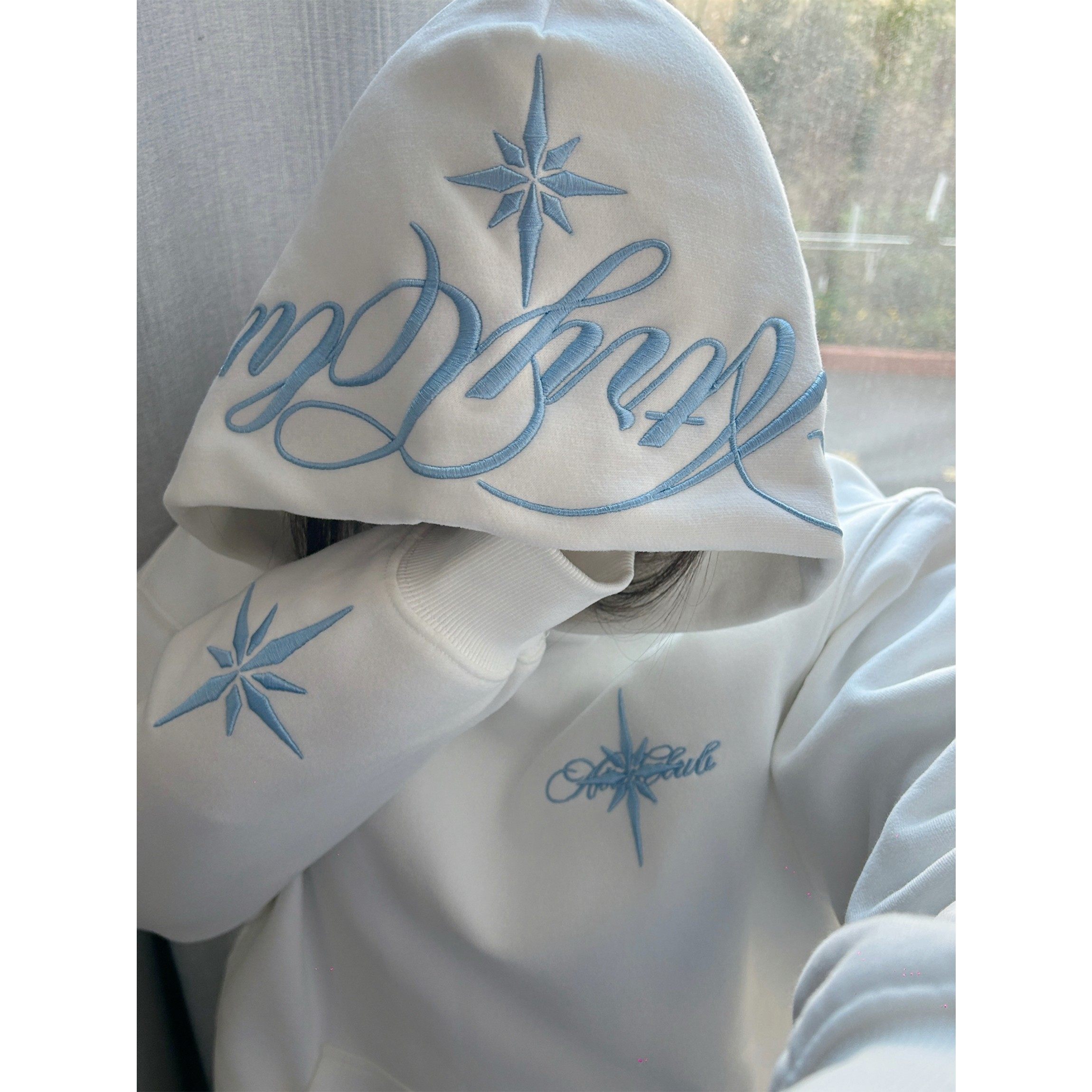 2025新款北极星刺绣连帽卫衣男款青少年帽衫加厚宽松冬季加绒外套