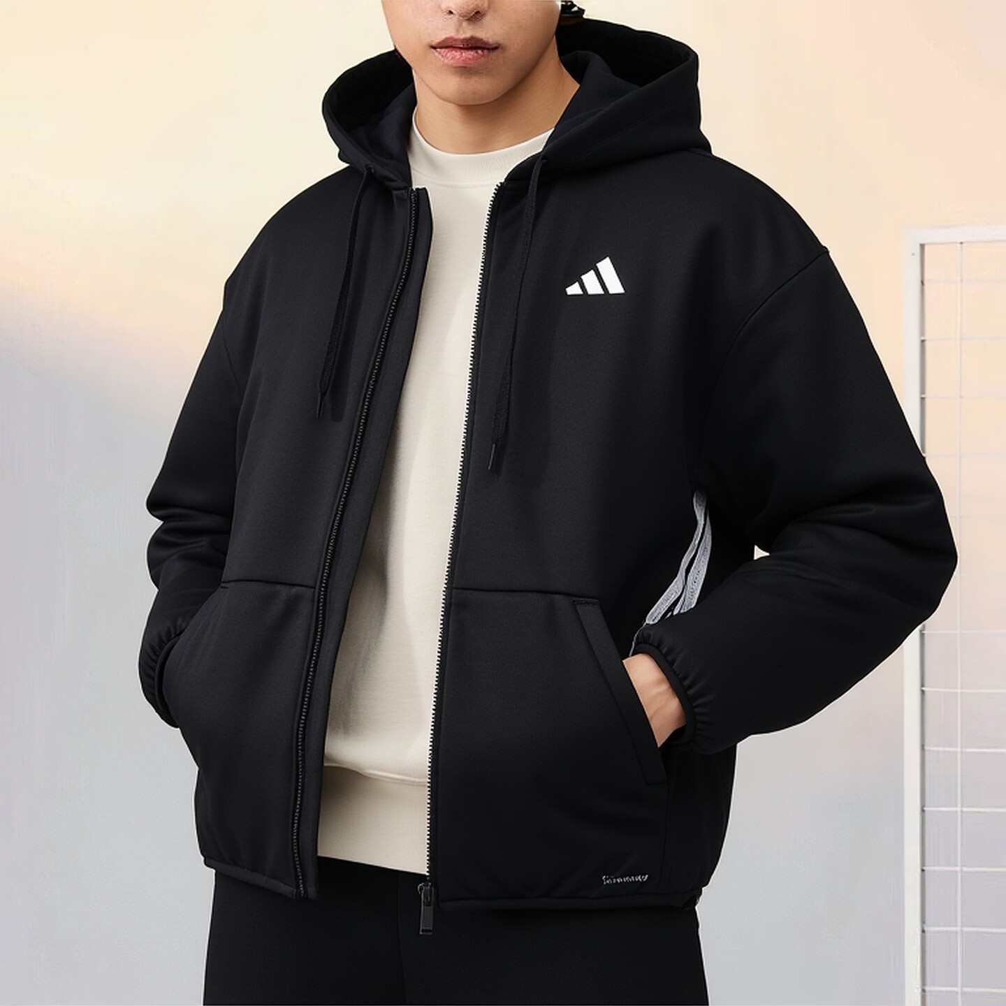 阿迪达斯男装冬季加绒外套2025新款休闲连帽运动服保暖上衣JZ967