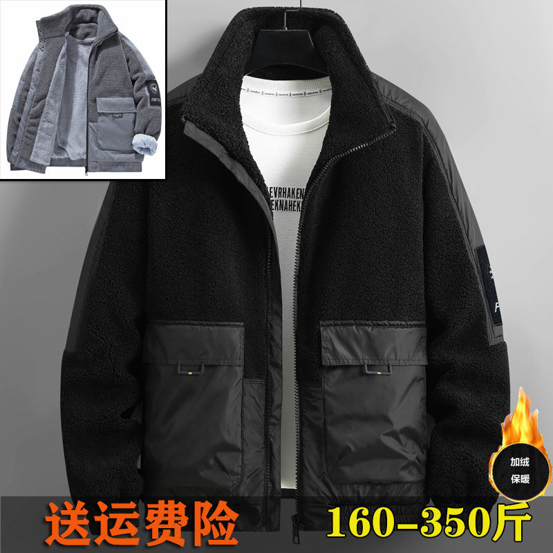 320斤加肥加大冬季加绒外套男胖子休闲羊羔绒棉袄特大码230斤男装