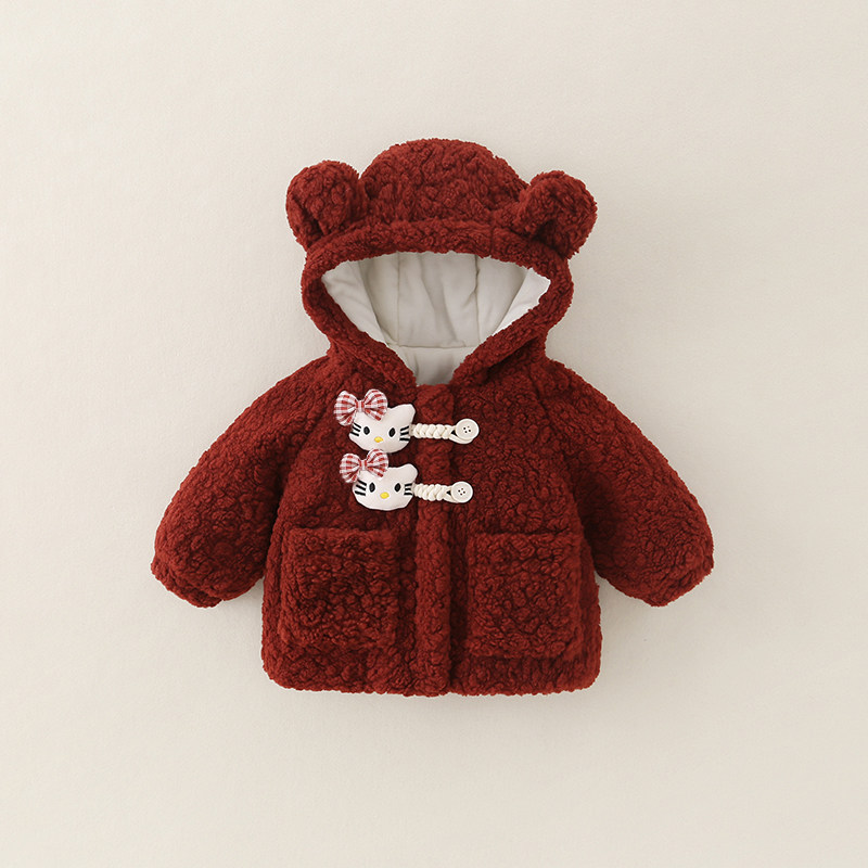 女童冬季加绒外套洋气婴儿加厚上衣保暖公主棉服女宝宝冬装毛毛衣