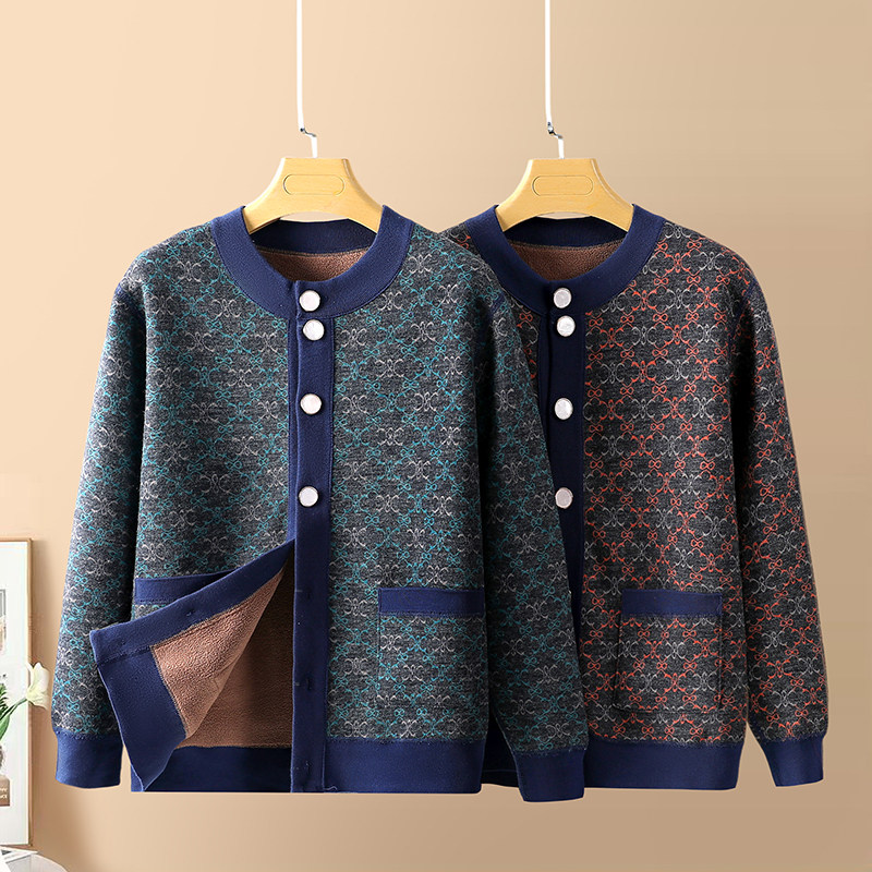 奶奶冬季加绒外套中老年人女装妈妈加厚针织开衫老人秋冬保暖衣服