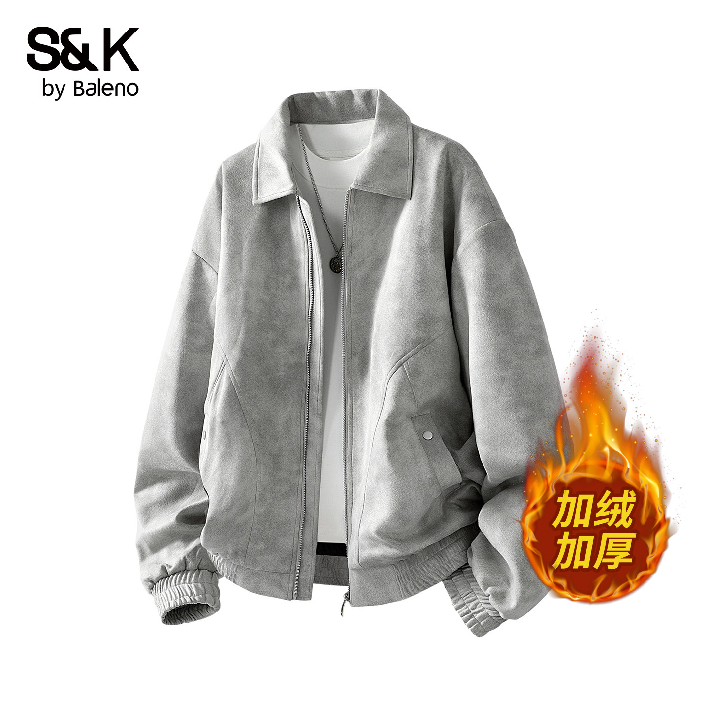 班尼路SK复古麂皮绒夹克男女2026新款机车磨毛皮衣冬季加绒外套YS