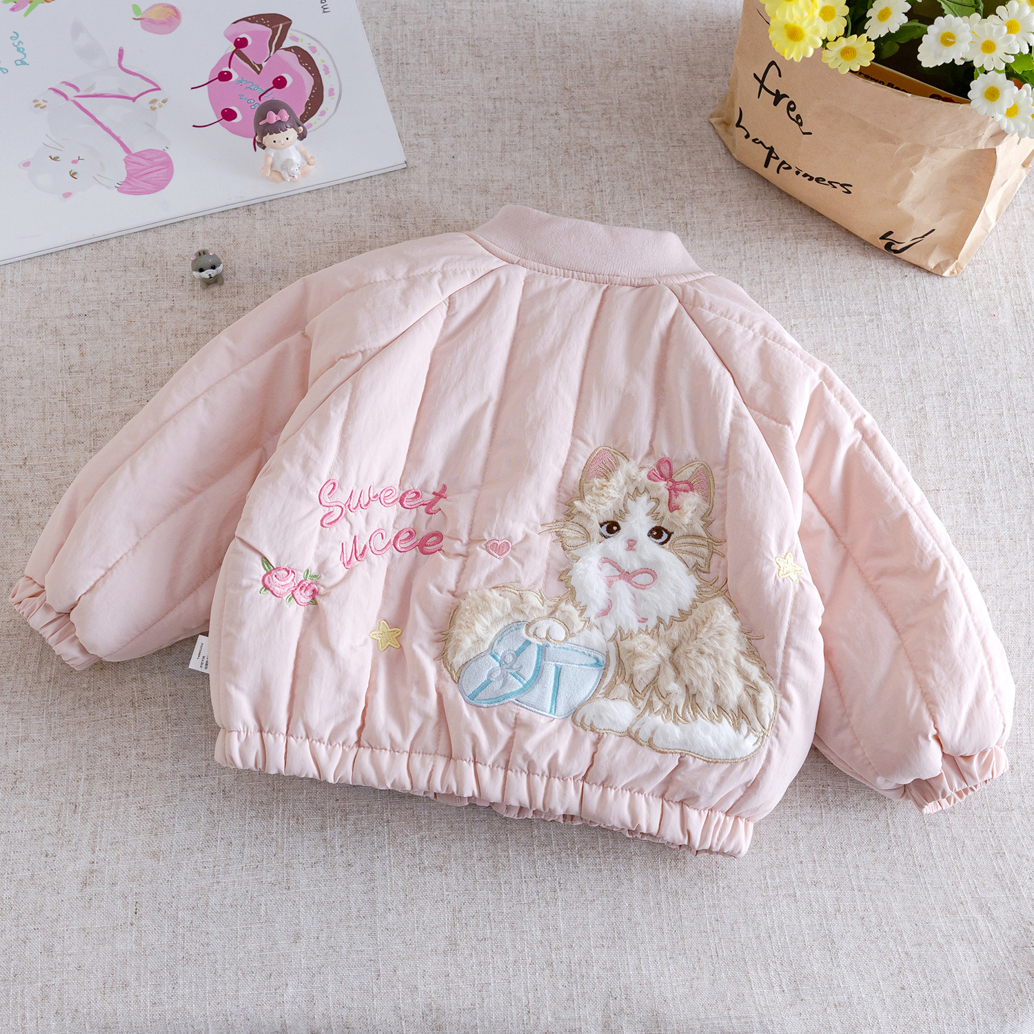 女童夹棉外套秋冬款2025新款宝宝冬季加绒外套小童儿童冬装棒球服