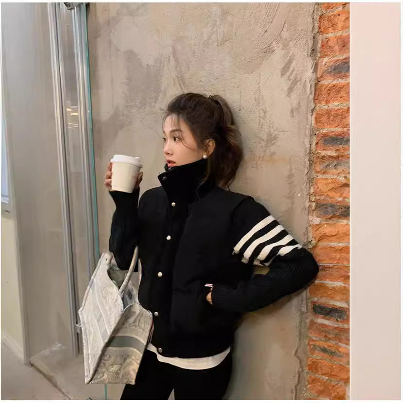 tb羽绒服女冬季加绒外套四条杠立领小个子潮牌拼接白鸭绒羽绒服