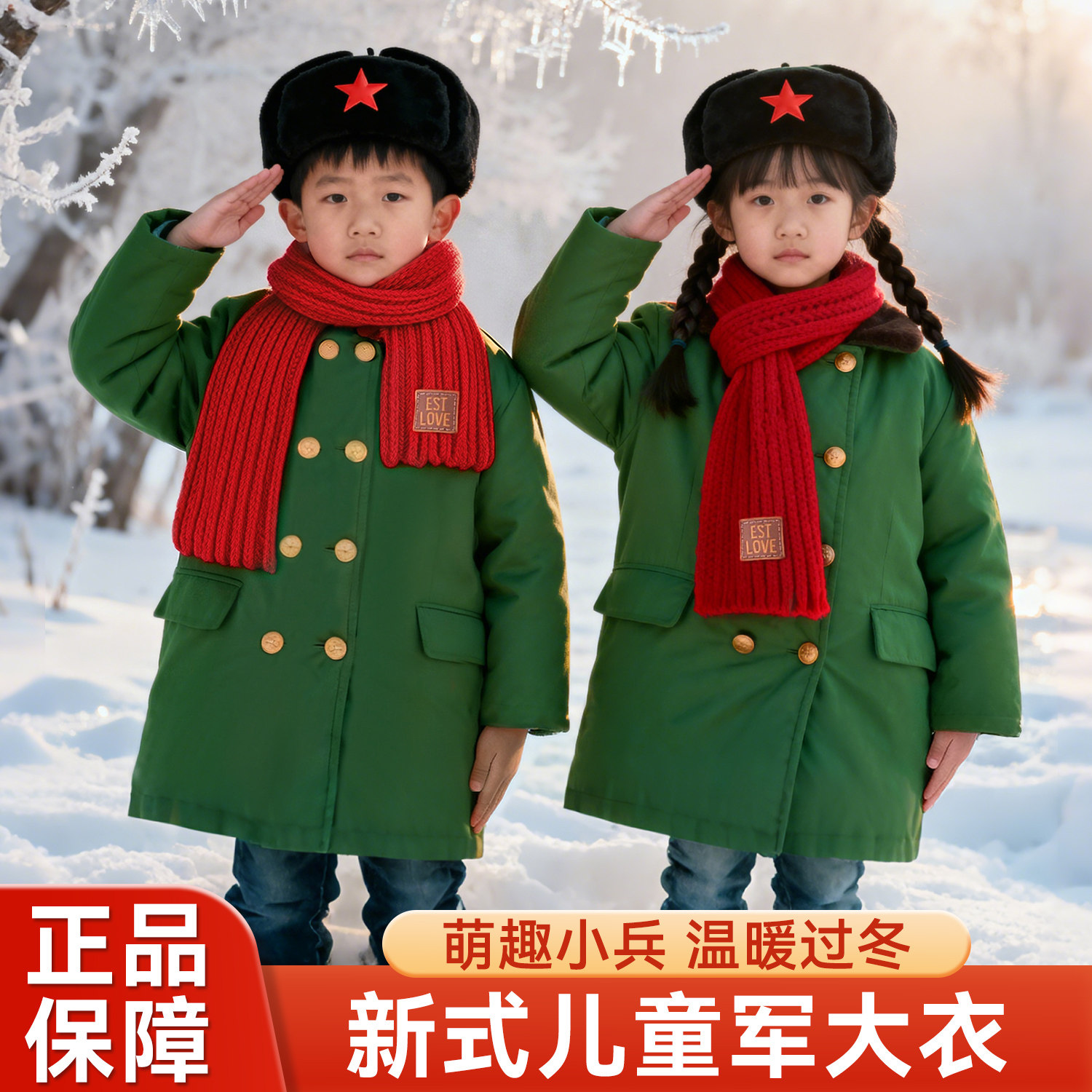 儿童军绿色棉大衣加厚宝宝女童棉服男童冬季加绒外套男孩冬款棉袄