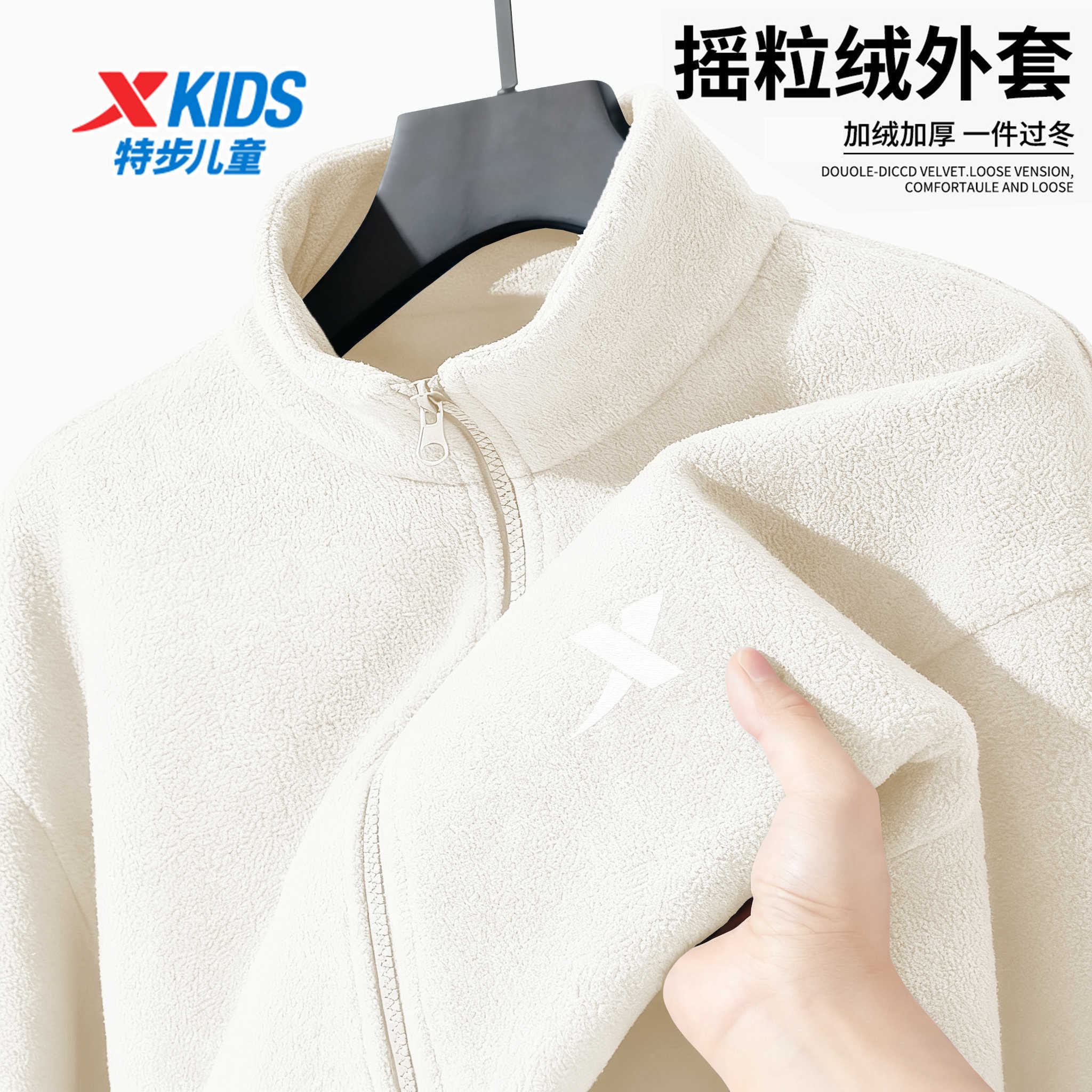 特步冬季加绒外套男童儿童双面摇粒绒童装青少年打底内胆保暖上衣