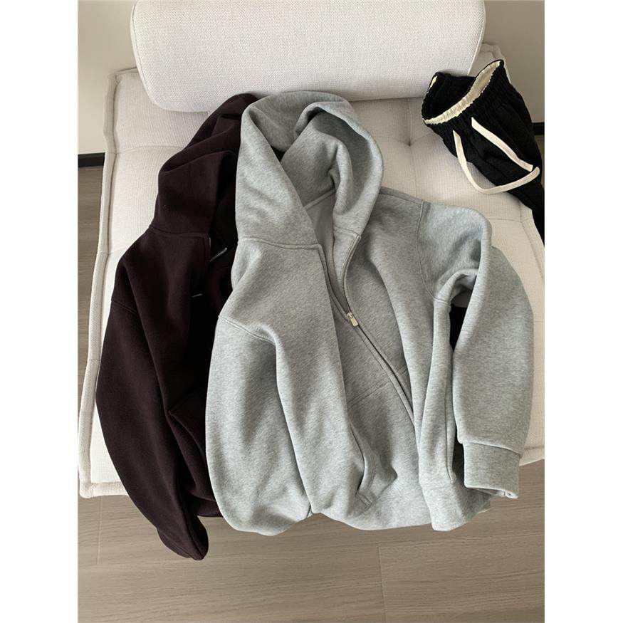 460g重磅摇粒绒卫衣外套女慵懒韩系大版连帽拉炼开衫冬季加绒外套
