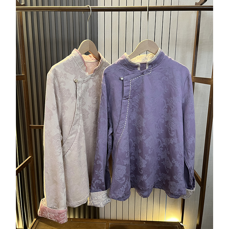 纯棉刺绣立领牛仔衬衫女宽松长袖春秋新复古名族风套头上衣高级感