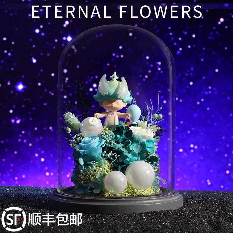 玻璃罩永生花十二星座玫瑰花闺蜜生日男女生老婆情人节七夕礼物送