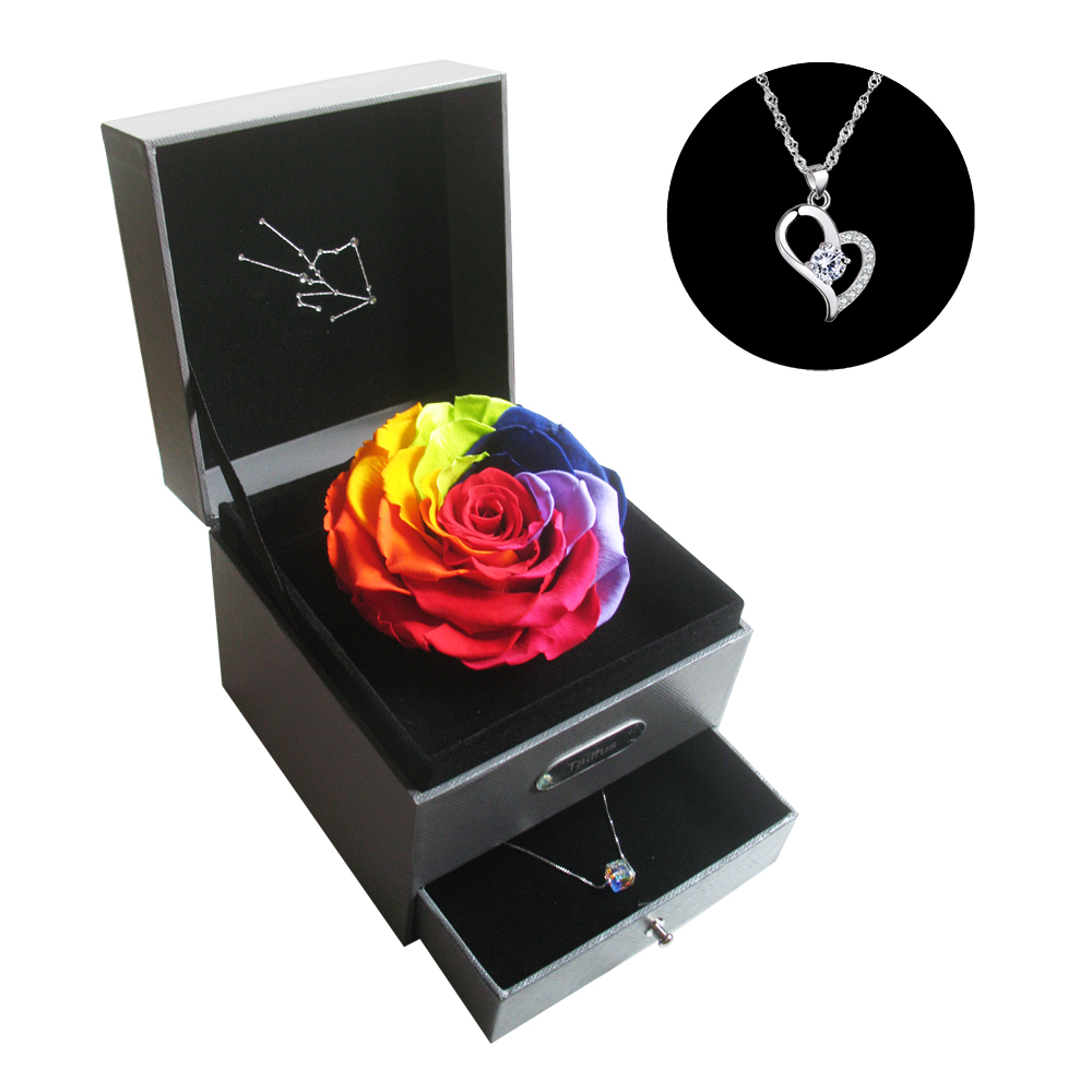 永生花星座礼盒七彩玫瑰花束送给女朋友生日礼物七夕情人节8.20