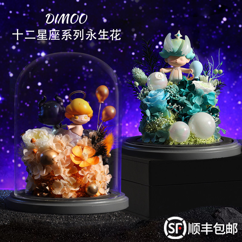永生花泡泡玛特DIMOO十二星座潮玩盲盒生日礼物情人节送女友闺蜜