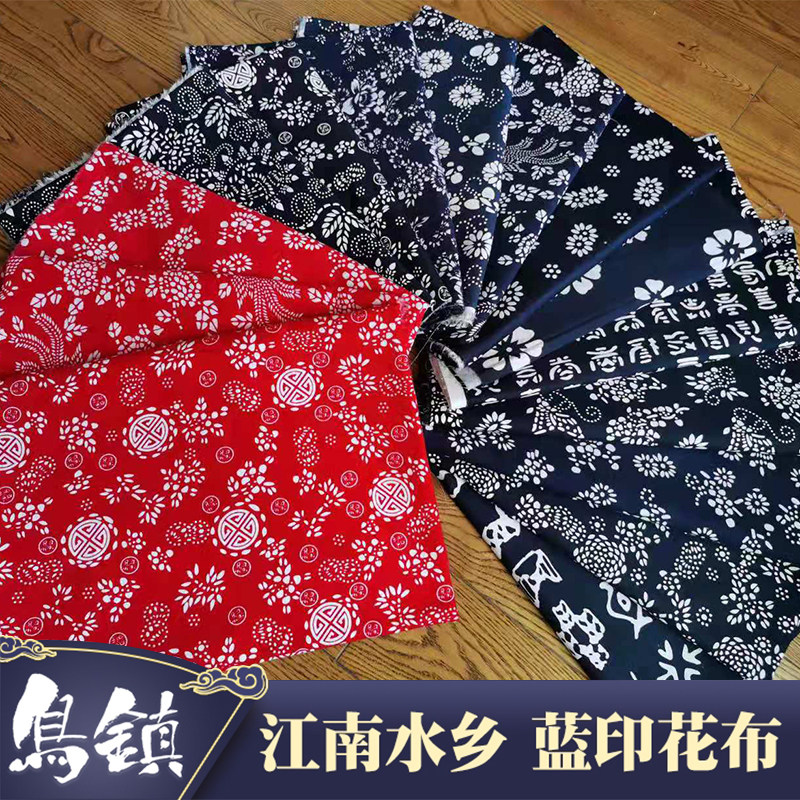 乌镇新品蓝花布料全棉青花手工民族服装面料中国风桌布门帘蜡染布