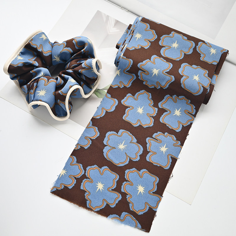 12CM咖底蓝花布艺带肠圈布料自制大肠发圈发绳 蝴蝶结发夹diy发饰