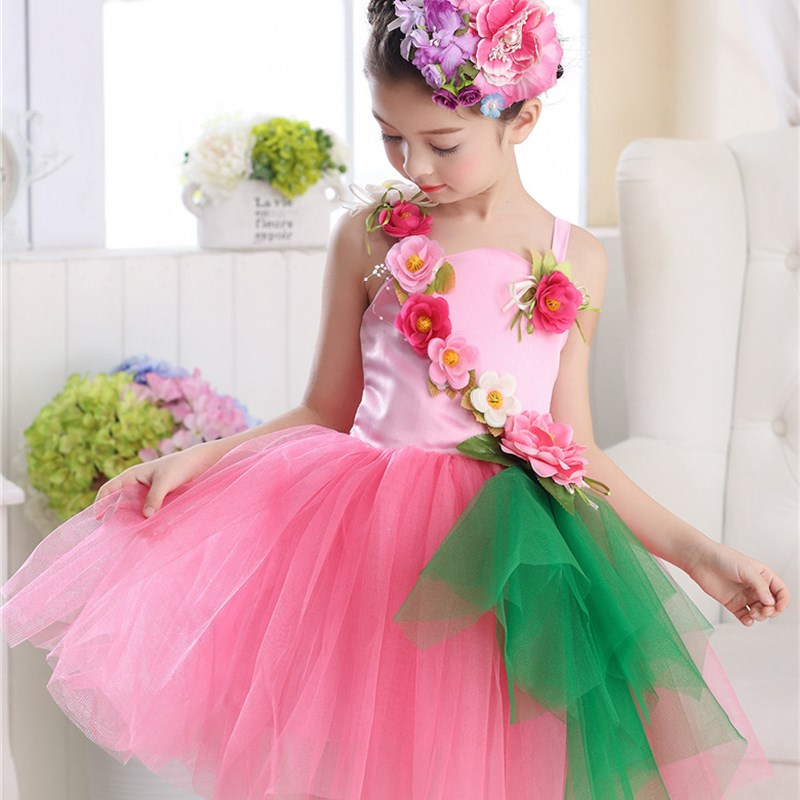 花儿你好舞蹈演出服小荷风采男女六一儿童公主裙蓬蓬纱裙道具水壶