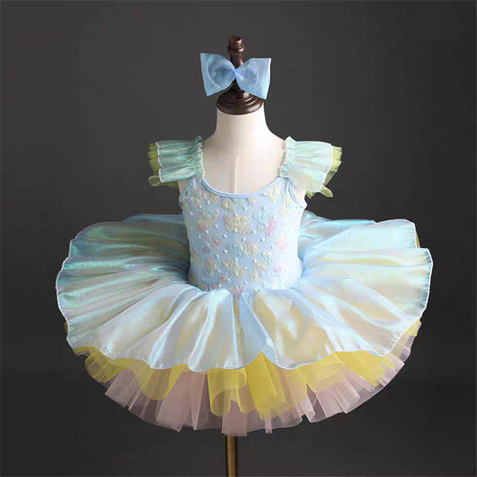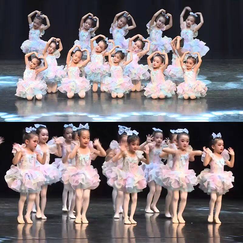 儿童芭蕾舞裙女童蓬蓬纱裙表演服七彩可爱合唱礼服公主裙演出服装