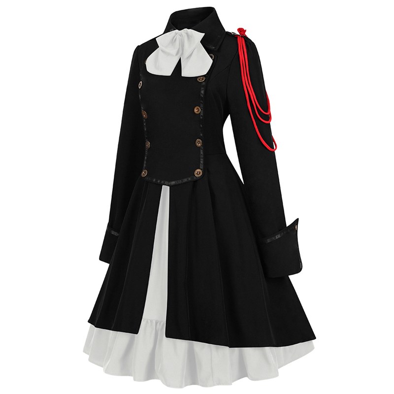 英伦风宫廷蝴蝶结礼服双排扣连衣裙女复古荷叶边COS公主裙演出服