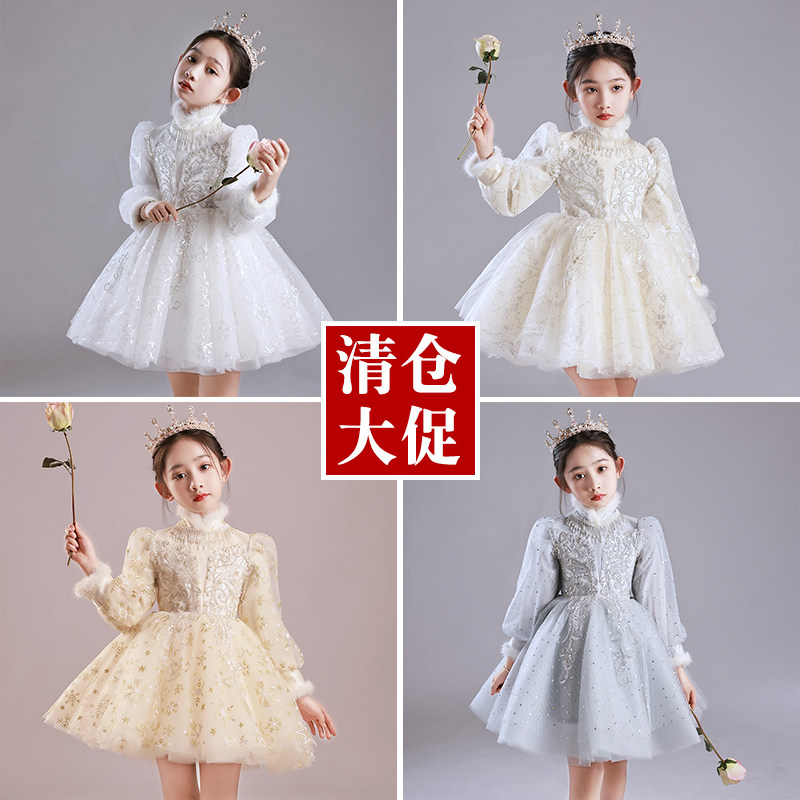 主持人礼服女童冬季加绒加厚保暖儿童钢琴演奏服花童公主裙演出服