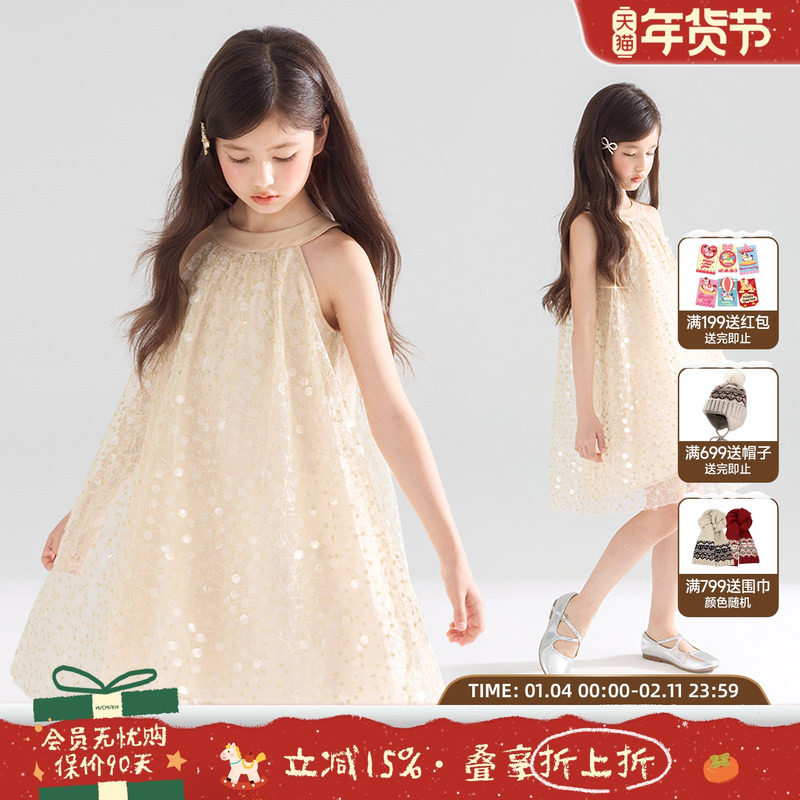 【闪耀派对】重工金丝绣花闪亮珠片挂脖连衣裙 公主裙演出服女童