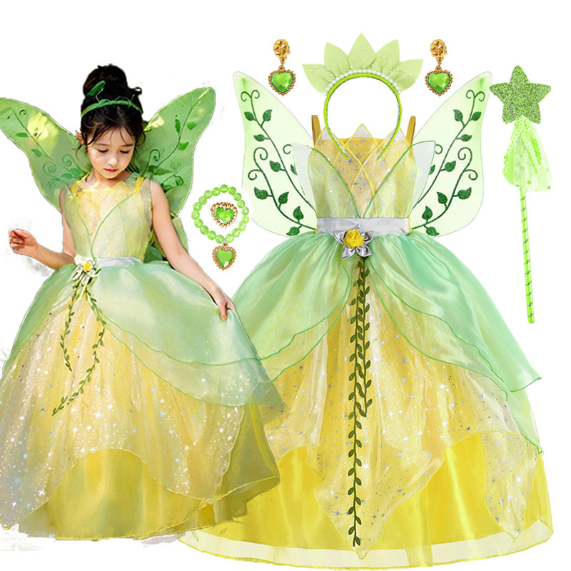 森林系女童礼服精灵仙子衣服外贸儿童蓬蓬纱蒂安娜公主裙演出服装