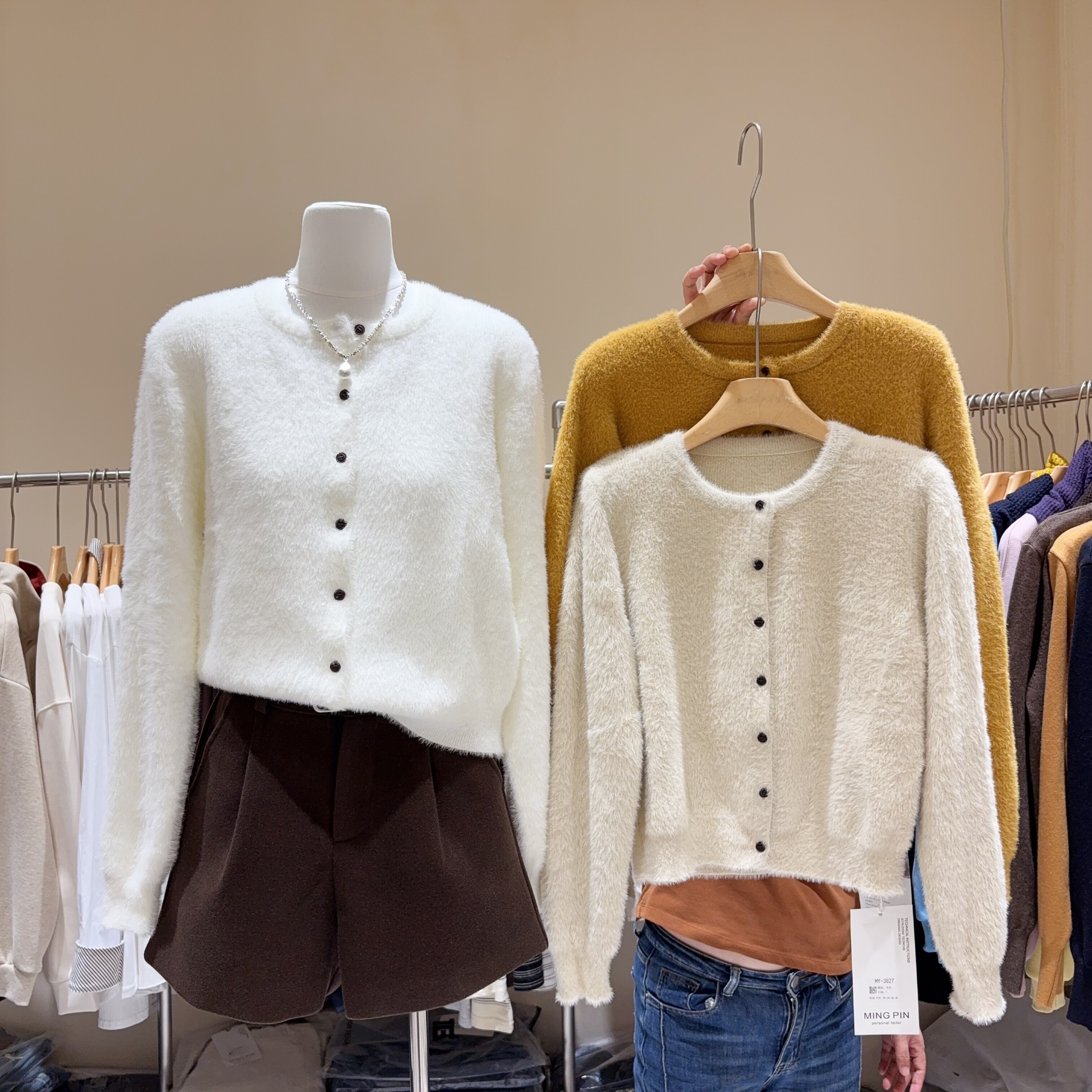 GirlyFancyClub白色恋人*软fufu奶白色貂绒针织外套短款毛衣开衫