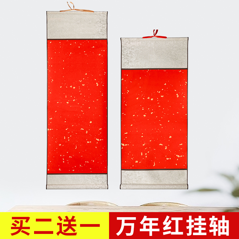 2025年新款空白宣纸卷轴挂画半生半熟书法国画毛笔字创作专用作品纸万年红挂轴手卷红色洒金红纸对联纸免装裱