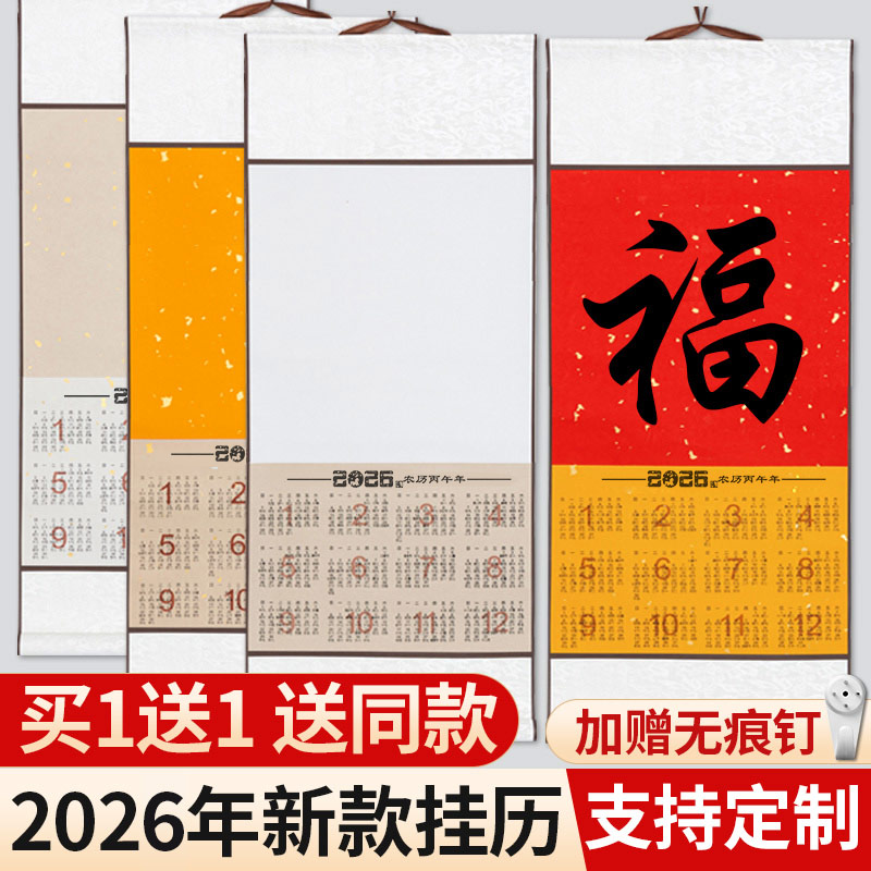 2026年新款空白宣纸挂历日历挂轴年历卷轴挂画万年红色对联纸春节毛笔字书法专用作品纸画轴字画装裱定制批发