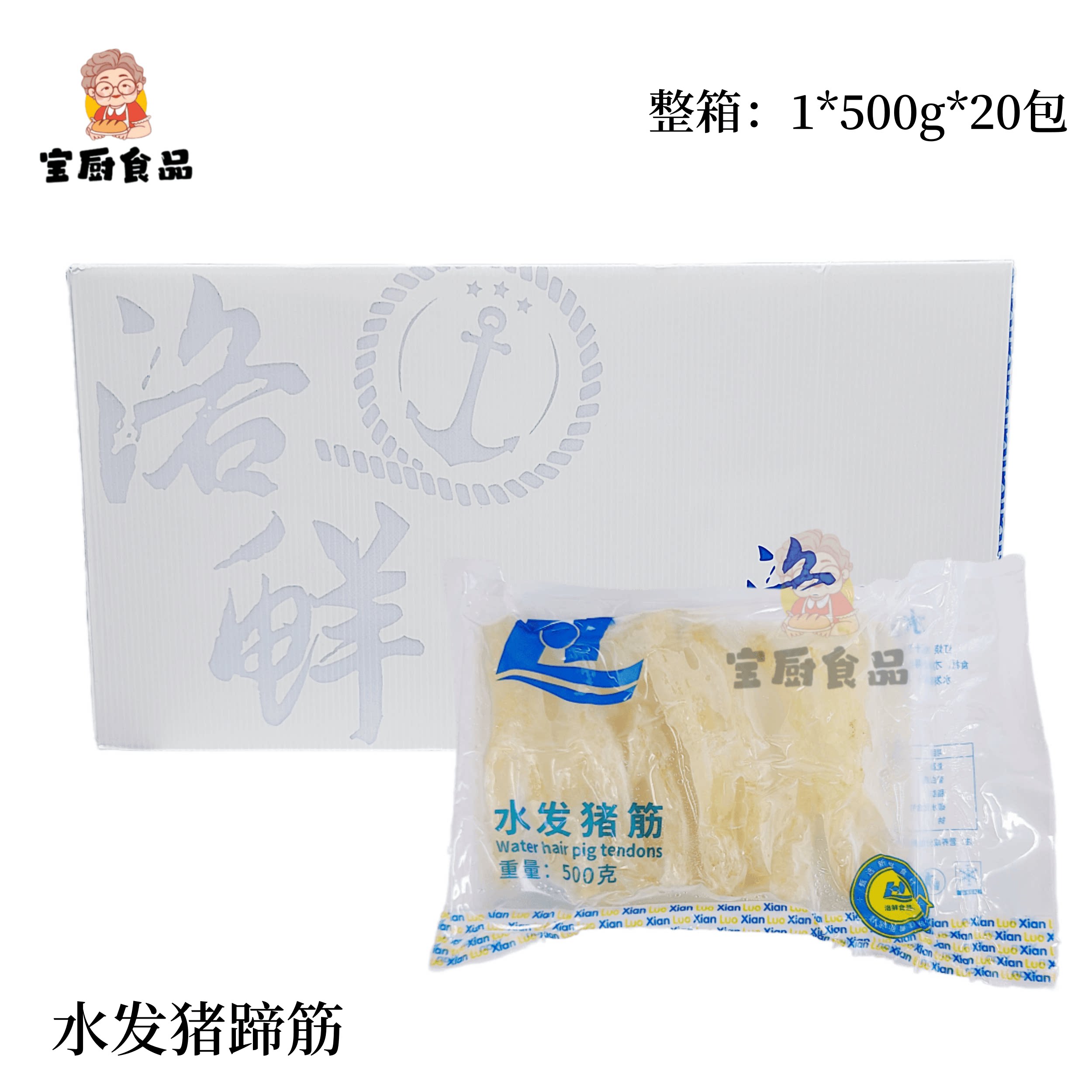 洛鲜水发猪筋水发猪蹄筋猪脚筋半成品500g20包整箱餐饮私房菜商用