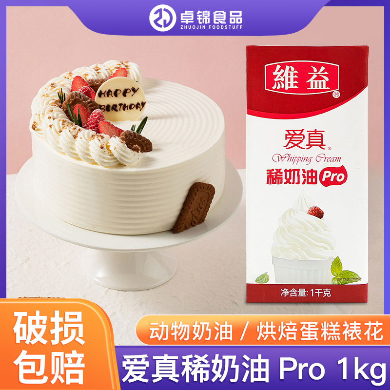维益爱真稀奶油300+淡奶油1kg烘焙蛋糕裱花专用原材料动物淡奶油